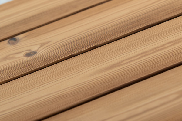 Hierbei handelt es sich um eine nordische Kiefer, die durch Hitzebehandlung bei ca. 212° C ohne chemische Zusätze technisch und optisch modifiziert wurde. Die Hölzer werden bei der Behandlung heißem Wasserdampf ausgesetzt. Das Holz verliert bei der Erhitzung einen Großteil seiner Feuchte. Der Zellaufbau wird so verändert, dass das Holz weniger Wasser aufnehmen kann, wodurch es weniger leicht quillt und schwindet. Spannungen werden im Holz abgebaut und die Dimensionsstabilität nimmt zu.